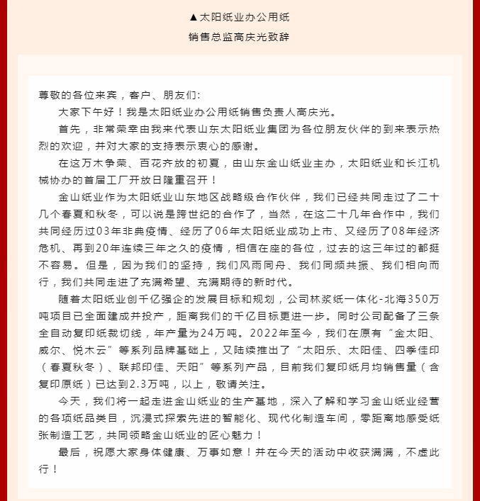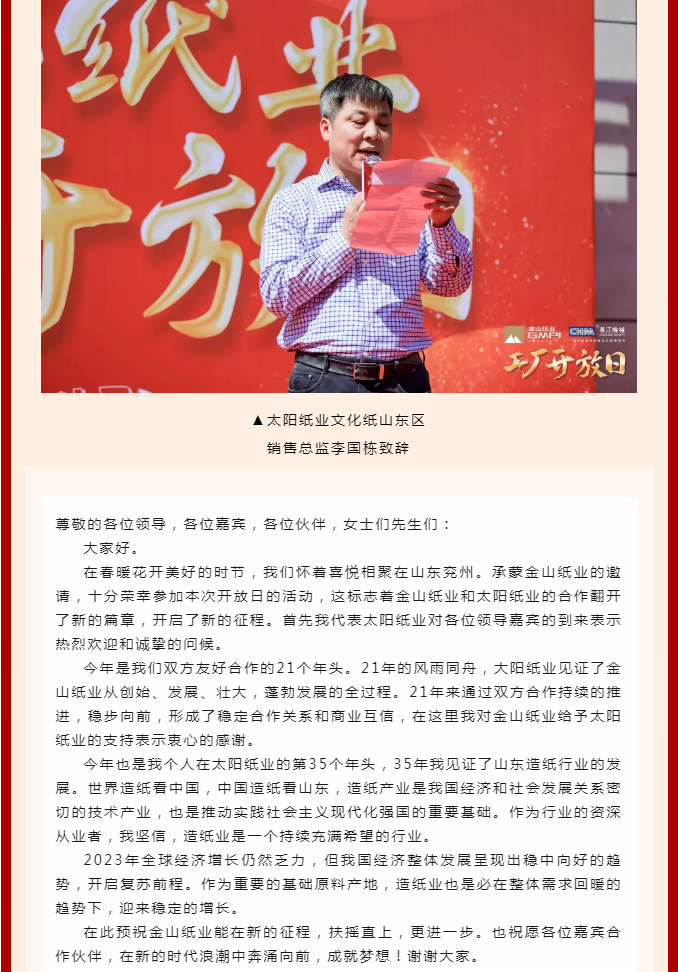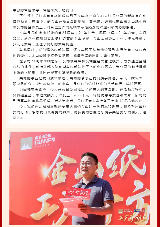 攜手并進 共創(chuàng)未來丨熱烈祝賀金山紙業(yè)?長江機械工廠開放日圓滿舉辦